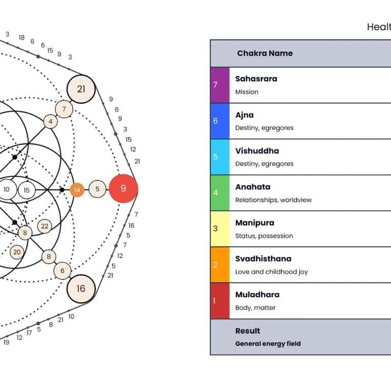 When you look at your Destiny Matrix chart, you’ll notice colored circles and a section labeled "Health." These elements are not random—they correspond to the chakra system. Each chakra is represented by a specific color, reflecting its unique energy: